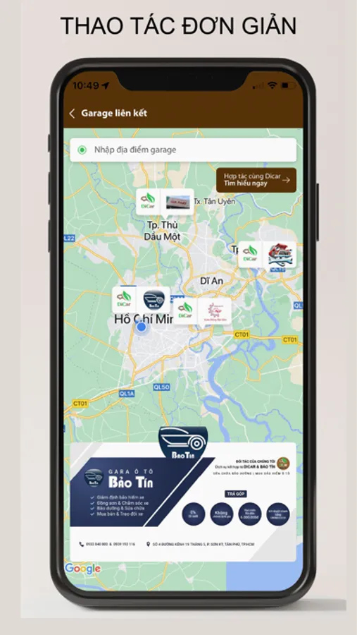 * Garage Ô tô - Các chủ xe ô tô hoặc người thuê xe trên ứng dụng dễ dàng tìm kiếm đến đơn vị Garage ô tô uy tín để xử lý sự cố về xe. Hoặc gọi trực tiếp để được tư vấn từ Garage ô tô gần nhất.