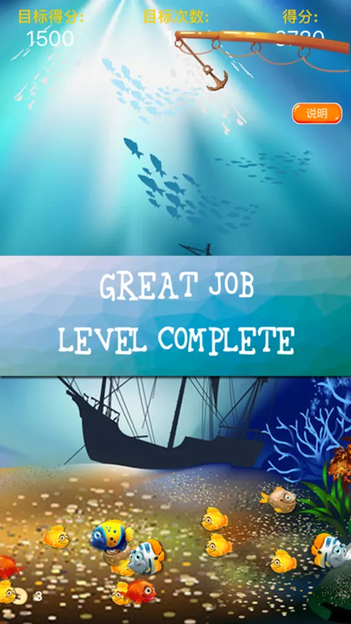 当在"目标次数"和"钓鱼所得金币数"都用尽且未达到"目标分数"则本关失败