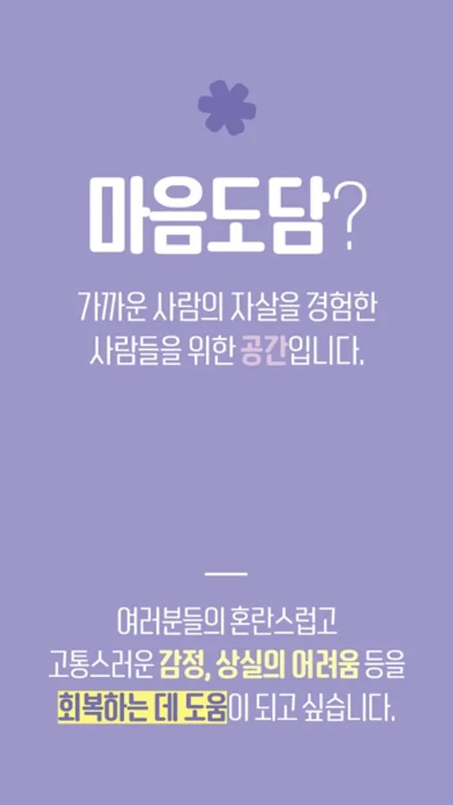 마음도담은 가까운 사람의 자살을 경험한 사람들을 위한 공간입니다.