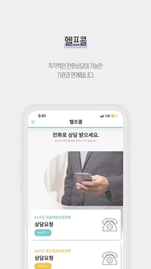 - 즉각적인 전화상담이 가능한 기관과 연계됩니다.