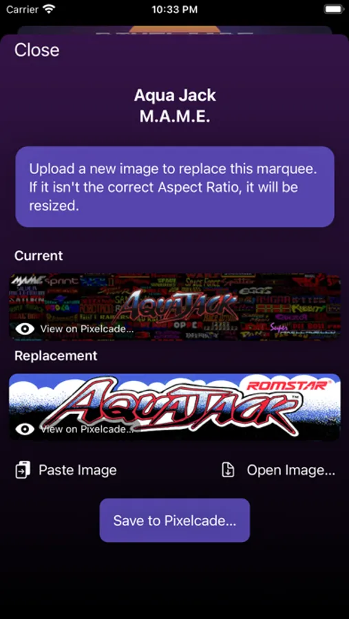 Use this app to browse and customize marquees on your Pixelcade™ arcade marquee. Browse marquees and video snaps by system/console, name, year, and manufacturer. Swipe left to replace a marquee with your own artwork.