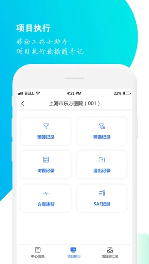 1)为SMO企业临床试验项目提供项目执行数据采集,方便项目执行人员随时随地录入项目数据,避免数据遗漏,提高工作效率;