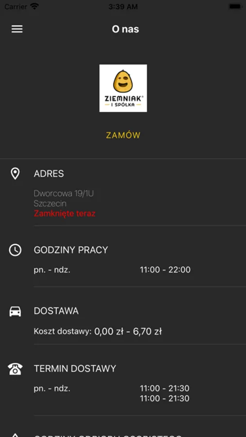 Oprócz zamawiania online aplikacja pozwala sprawdzić: