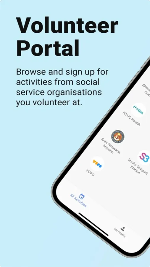 Volunteer Portal (VOPO) let you browse and sign up for activities from Social Service Organisations that are using VOOP.