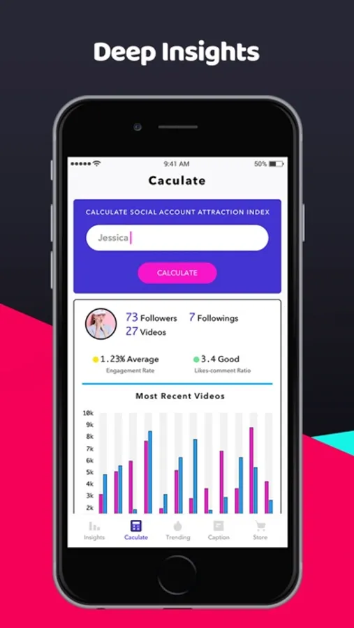 - The app calculates your social performance attraction index, including your audience quality score. Thus, users can adjust their videos.