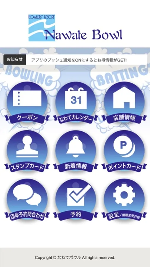 『なわてボウル』からのお知らせや会員様限定の通知情報が届きます。是非ご確認ください!