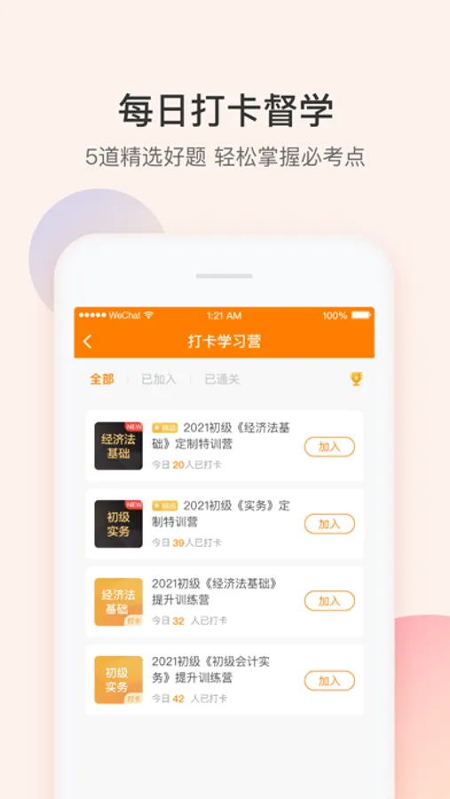 每天5分钟,打卡5道题,名师精心挑选,1题抵10题,碎片时间也能很好利用,万千考生共同打卡,备考路上不孤单~