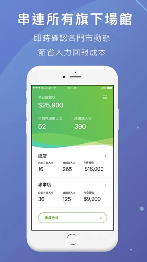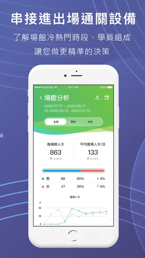 BookFast Boss provides a variety of operating data and sales analysis, real-time update of the venue's revenue on the day, from member gender, age, entry and exit, consumption, popular courses, to the automatic generation of data charts, the boss wants to see it, all with one click!