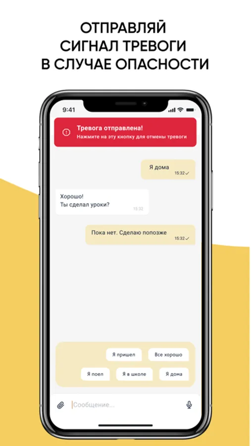 В приложении ты сможешь отправлять sos-сигнал родителям, если находишься в опасности.