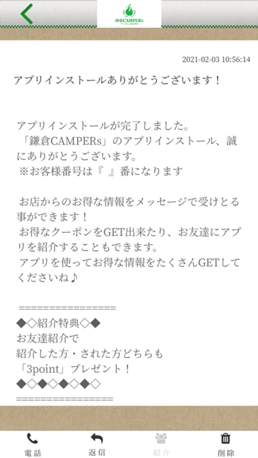 CAMPERsのアプリをSNSを通じてお友達に紹介する事ができます。
