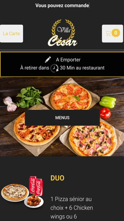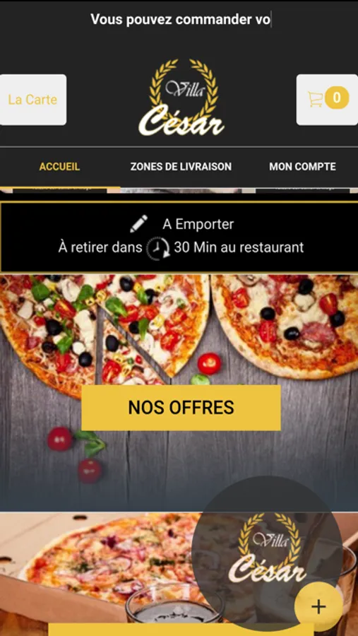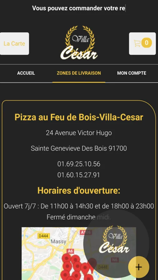 L'application Villa Cesar vous permet de commander en ligne ou par téléphone via votre application. Vous pouvez consulter notre carte et choisir vos produits.