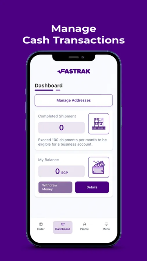 Fastrak is a new and innovative company that will cover all your wants and needs. We delivery parcels weighing from 0.5 to 5kg at any time. With our different types of delivery services, Fastrak will cover it all. From delivering your parcel in 180 minutes inside Alexandria to delivering to Cairo and receiving it in 24 hours. The app will keep you updated on the whereabouts of your parcel and where it is on the track. Don't have cash? You can pay using your credit or debit card when our representative comes to pick up your parcel or when delivering it. Using our app will allow you to be in the comfort of your home while we do all the work. Pick the Fastrak