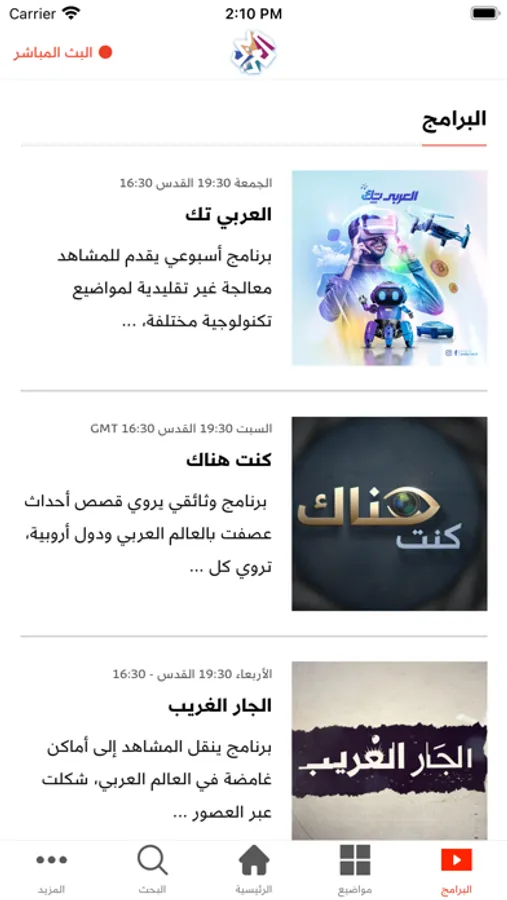 تطبيق التلفزيون العربي يتيح لكم مشاهدة البث المباشر للقناة، بالإضافة لمشاهد كل البرامج التي يتم عرضها على الشاشة في الوقت الذي تختارونه