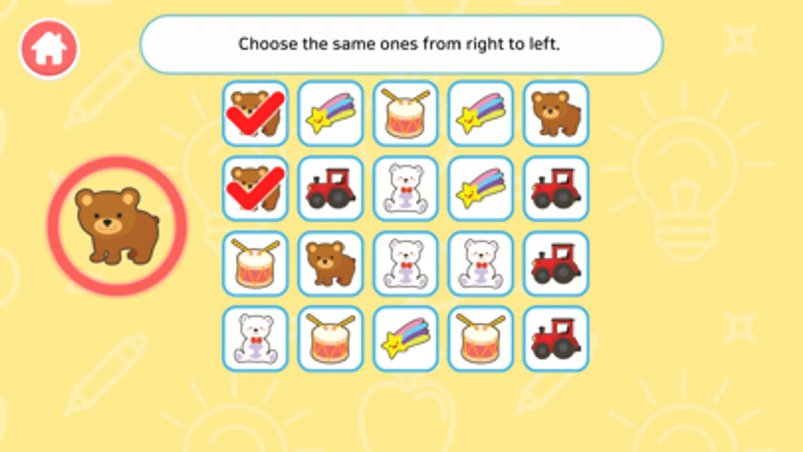 : This is a game where you flip cards one by one to see which picture is there and find the card with the same picture. The higher the difficulty, the more cards and types of pictures. It helps develop concentration and memory.