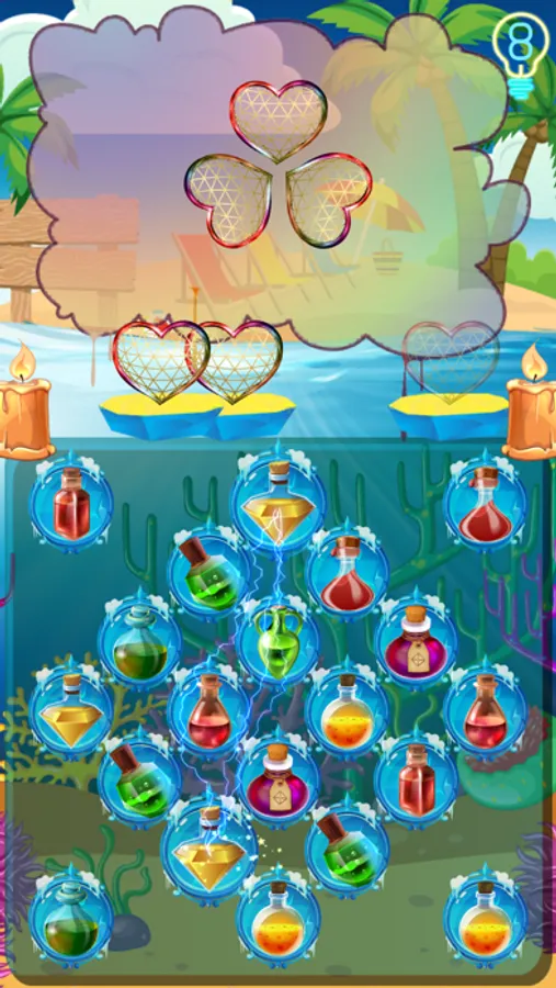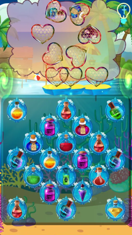 ◉ Connect 3 same magic potion bottles to complete the puzzle.