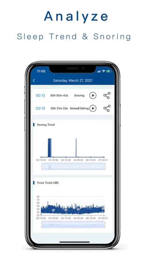 Snore Tracker is an innovative app developed by the Plus1Health team for 2 years that can record, record and track your snoring and sleep-talking stories, and help you find effective ways to reduce snoring.