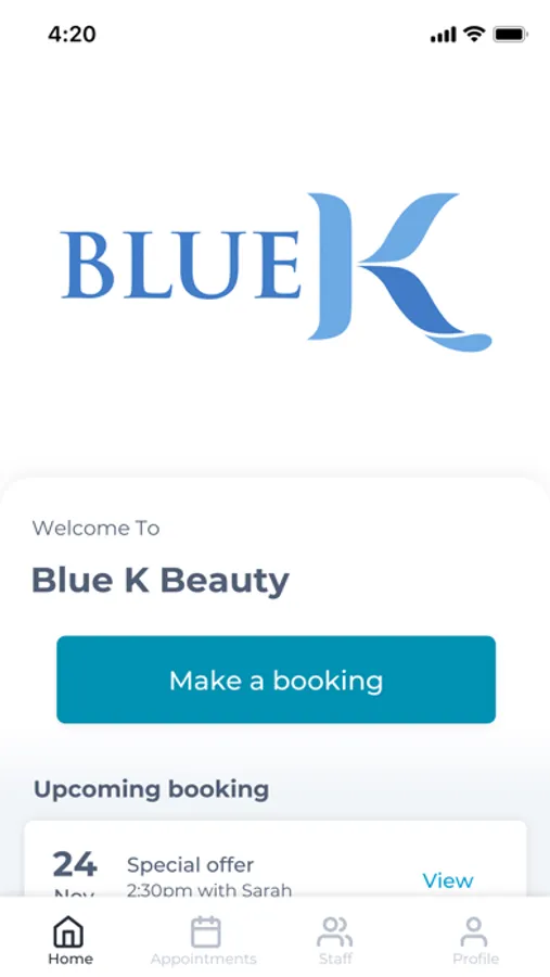 The Blue K Beauty app makes booking your appointments and managing your loyalty points even easier. You're just a few taps away from feeling good and looking great!