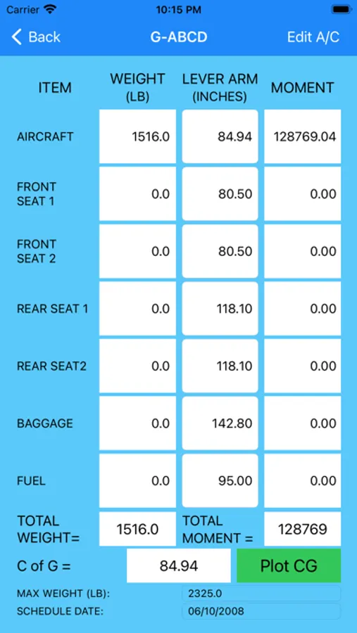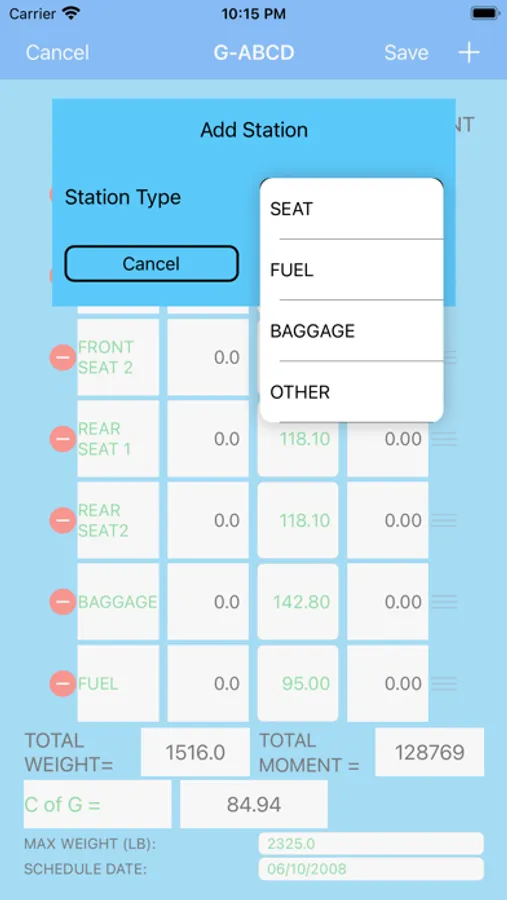 - Easily configurable Weight & Balance calculations for multiple aircraft