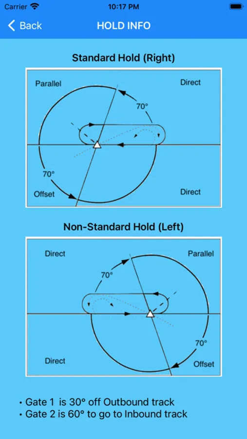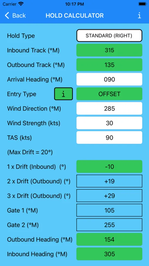 - Input the hold's inbound track, the joining heading, wind and TAS and it calculates the type of Hold join required, the 'Gate' angles and the drift corrections needed in the hold