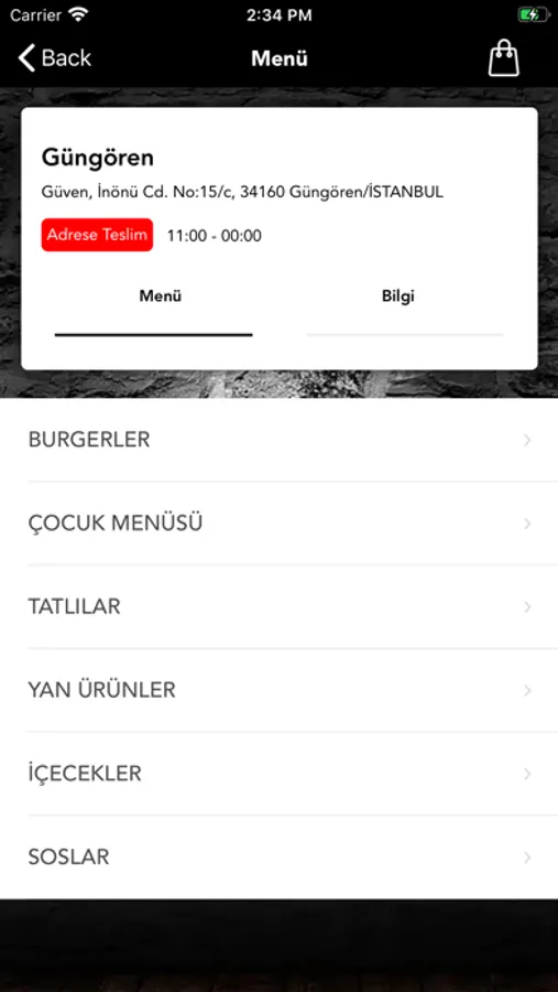 * Menümüzü inceleyin.