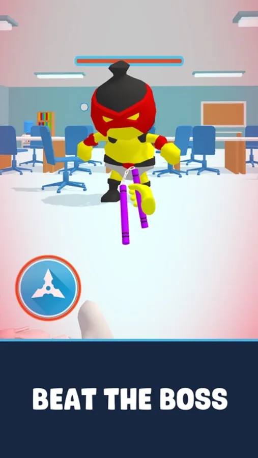 Defend yourself from the enemy attacks, deflect from the incoming shurikens & attack the enemies and the bosses using your nunchaku & shuriken to make it to the end of the level in this FPS Hypercasual game!
