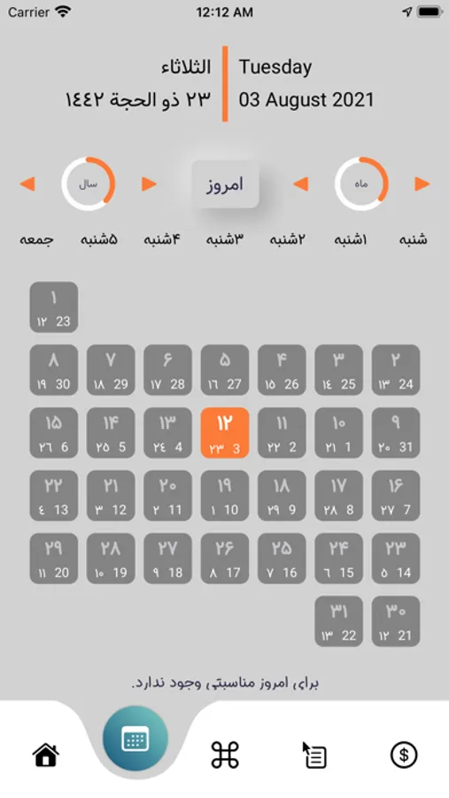 امکان پیمایش در ماهها و سال های قبل و بعد بهمراه نمایش مناسبت های هرسال