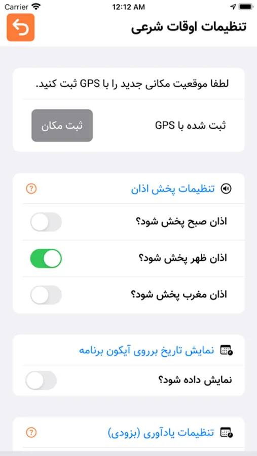 امکان پخش اذان دقیق (با فعال کردن در تنظیمات)