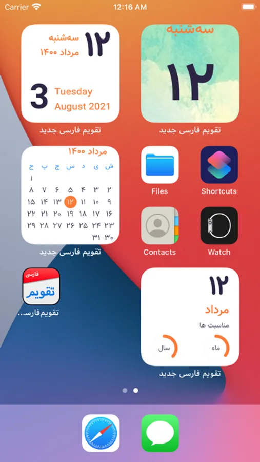 وهمچنین چندین ویجت کوچک وبزرگ بسیار زیبا هم برای نمایش تاریخ در کنار اپلیکیشن ها در صفحه اصلی گوشی تون در نظرگرفته شده که میتونید اضافه بکنید