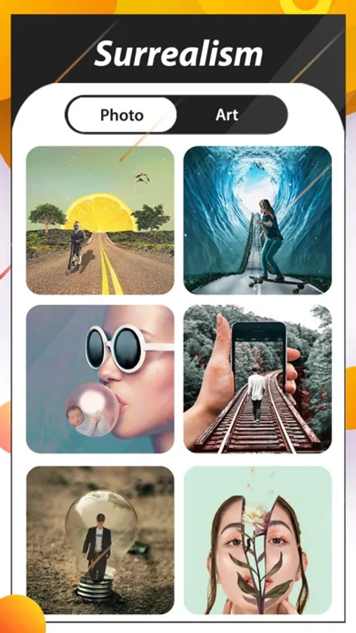 Surrealism: photo and art maker allows you to make surreal dada artwork and painting. It also allows converting your photo into surrealism art by adding your image in unreal and strange photography. Be an artist by creating your dream art. You can also set your surrealism art as wallpaper. The app provides you three features: