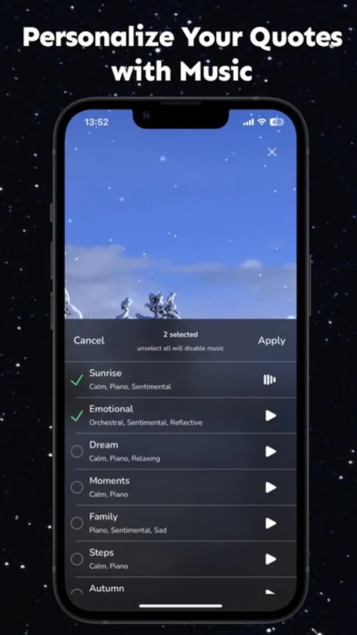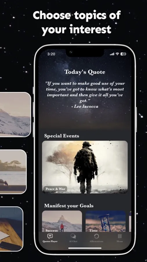 Get instant access to thousands of hand-picked quotes and affirmations, organized by category. From love and positivity to success and faith, you'll find the words of wisdom you need to elevate your life. And with the ability to listen to quotes with inspiring background music, you'll be motivated no matter where you are - at home, at work, or on the go.