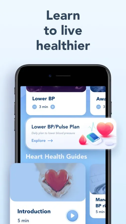 The main advantage of BreathNow blood pressure app is that it is not only a blood pressure & heart rate monitor and stress monitor. It also provides practical tools to lower blood pressure and heart rate with meditation, slow breathing and more. It alerts you to key heart risk areas and suggests activities to lower these risks.