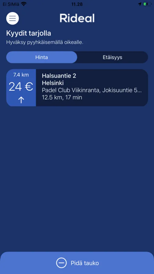 The app for Rideal taxi drivers to see and accept new taxi rides. The best feature is that you as a driver get to decide when the price is right for the gig.