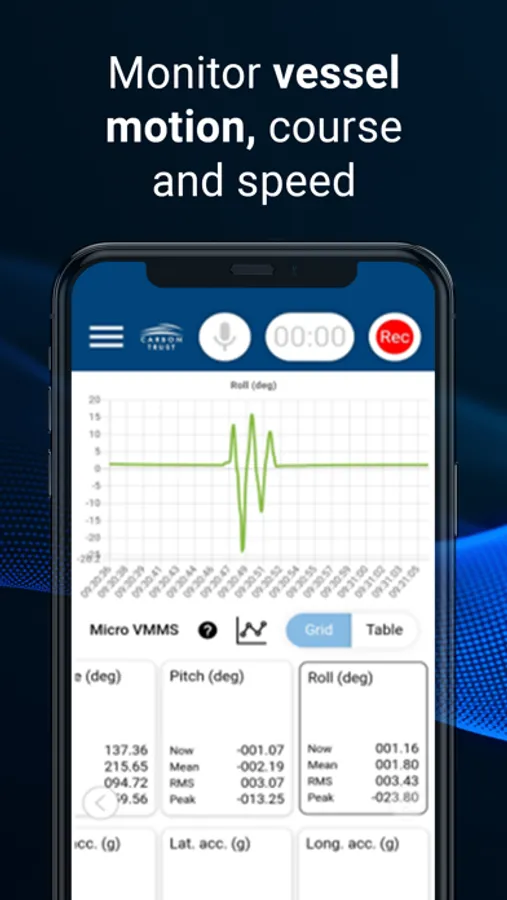The Vessel Motion Monitoring App (VMMA) has been developed through the Offshore Wind Accelerator (OWA), Carbon Trust’s flagship collaborative RD&D programme, with support from Enigma Interactive and Seaspeed Marine Consultants. The accuracy of the data provided by the app has been validated against a permanent Vessel Motion Monitoring System through a rigorous offshore testing process, it is not however intended to replace these dedicated systems or being used for contractual purposes.
