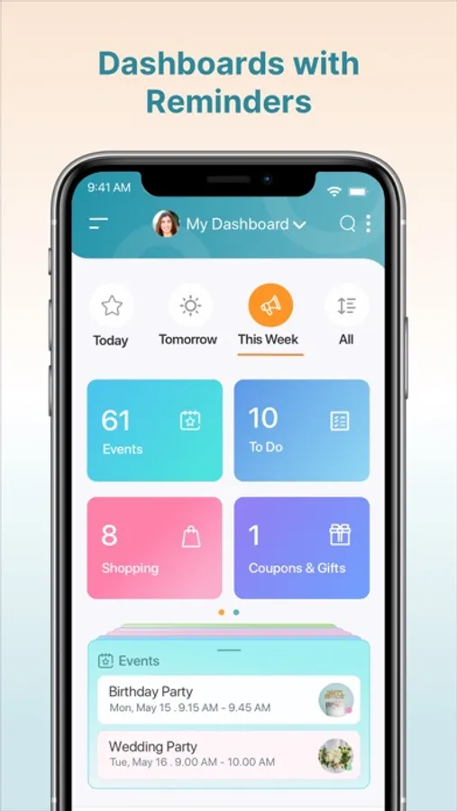 MiPlaniT's dashboard puts it all together. With a Day, Tomorrow, Week or all view, its a centralized place for you to wake up each day to see what is going on.