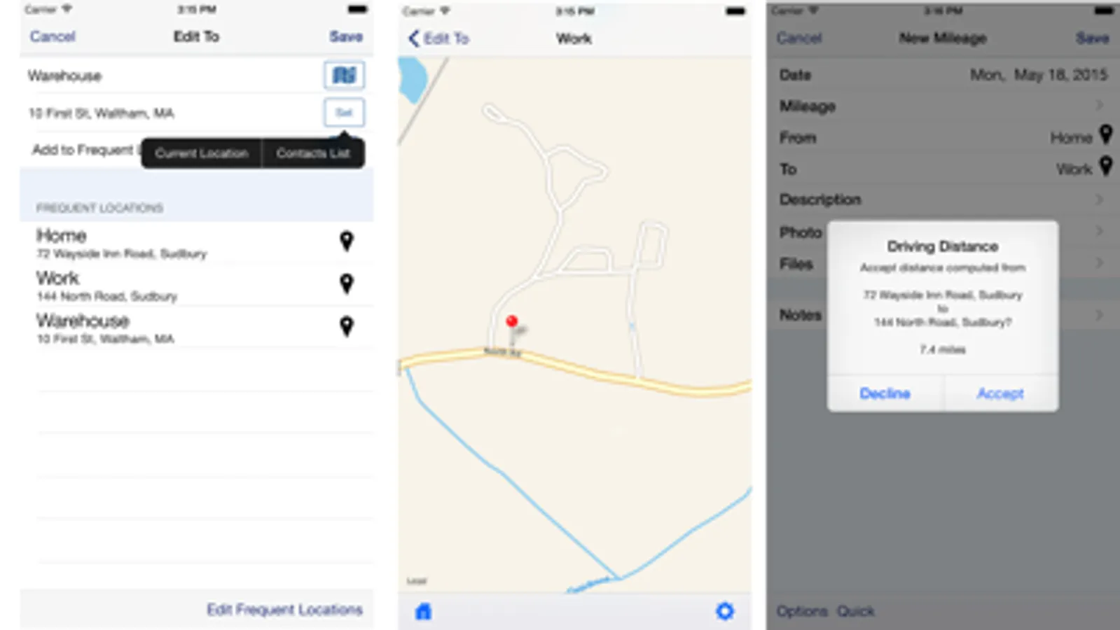 1. LIVE mileage tracking - the app will track your every move via GPS. This feature requires you to tell the app when you start and stop.
