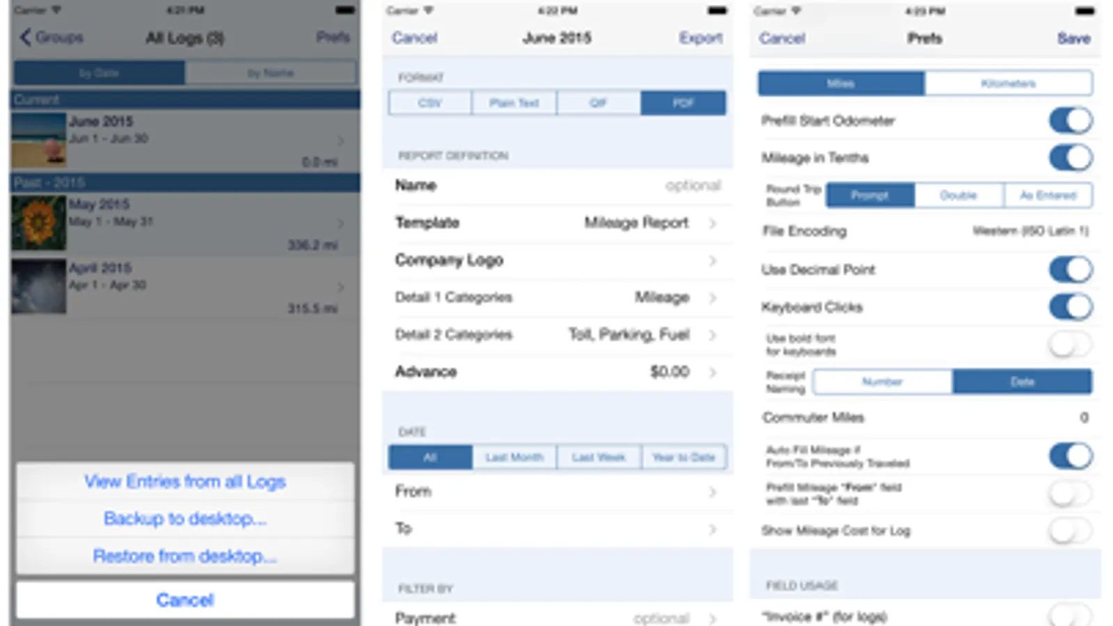 * Export your reports to iCloud, Dropbox or your computer