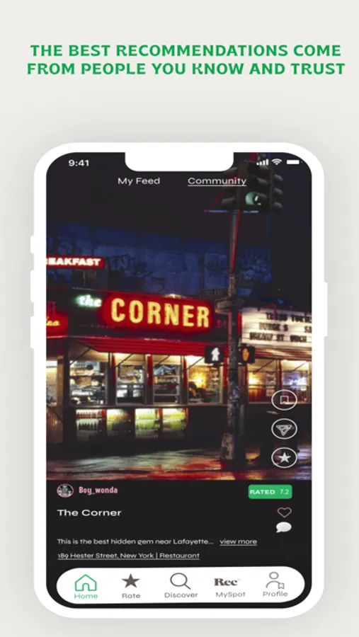 Why waste time on TV shows you won't love or restaurants that don't live up to the hype? Stop doom-scrolling. RecSpot allows trusted friends, not hidden algorithms, to provide personalized recommendations of what to watch and where to eat or drink.