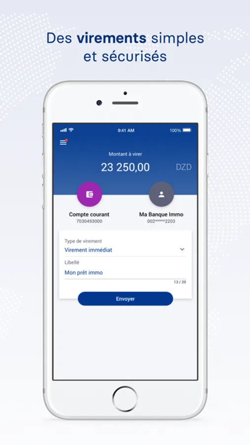 Réalisez vos virements vers des comptes internes ou externes en quelques secondes ou ajoutez un bénéficiaire directement depuis l’application