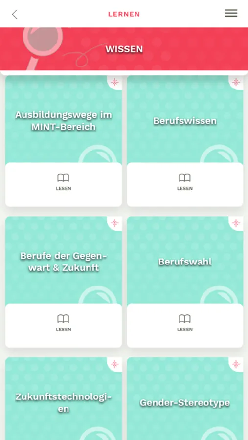 - Spannende Wissensinhalte zu den Themen Ausbildungswege im MINT-Bereich, Berufswissen, Berufe der Gegenwart & Zukunft, Berufswahl, Zukunftstechnologien und Gender-Stereotype