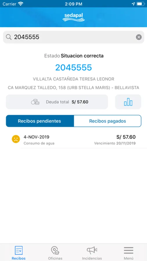 La aplicación permite consultar tus recibos en deuda y pagarlas en línea usando tu tarjeta de crédito. Además puedes obtener una copia de tu recibo. Infórmate sobre interrupciones del servicio de agua y conoce la ubicación de las oficinas físicas.