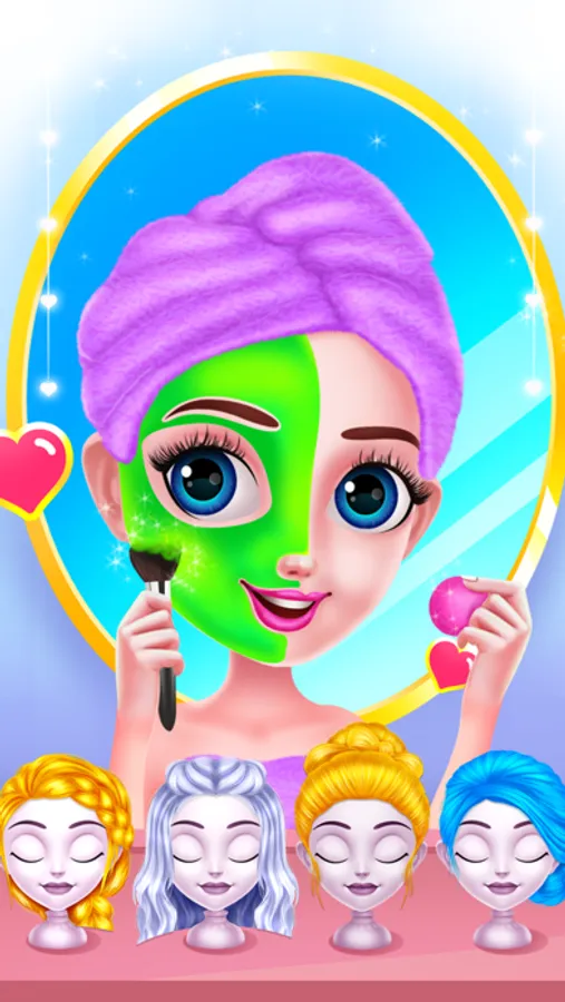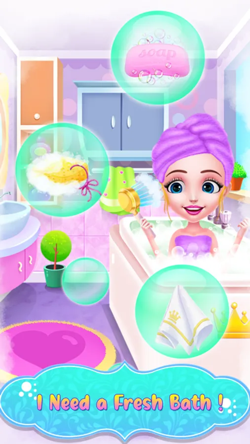 You must join this hairstyle game and help our princess girl redefine her look. Have fun and find a suitable look for her while you pamper her. Follow the instructions for all levels and take care of her properly. Start the day with the spa session where you will prepare her a refreshing bubble bath. Wash her hair with shampoo and her body with soap then you can help her dry for the next step. You could spend some time together in the playroom, but don't forget to let her get the sleep she needs. Continue the game and get to the dress up where you could pick her a nice outfit and hairstyle. Combine different styles for her outfit and try to match a cute hairstyle too. You should also take care of her face. Apply a moisturizing mask and make her skin glow. The makeup step comes next and here you will highlight her beautiful features. You will have to get rid of the pimples and arrange her eyebrows. Now add the makeup and move on to the hairstyling. There are multiple devices you could use to customize the way her hair looks. You can choose the curly, straight, or braided look to match her future outfit. Combine colors and pieces of clothing to find the style that matches her taste. Finish her aspect with pretty accessories and great shoes. A pair of sunglasses, a headband, or even a bow can make her look fabulous. Have some pictures taken to capture her great transformations.