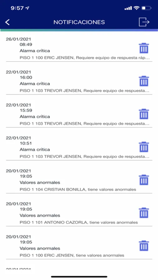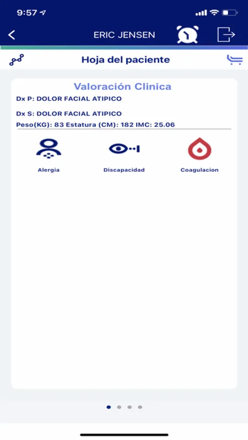 Los médicos y/o enfermeras, pueden consultar la valoración clínica de pacientes hospitalizados Visualización de signos vitales, dolor, estado de conciencia, orina y otros parámetros de valoración clínica tomados a la vera de la cama, incluyendo histórico con gráficas de cada paciente. Envío de alertas si alguno de dichos valores estuviera fuera de rango.