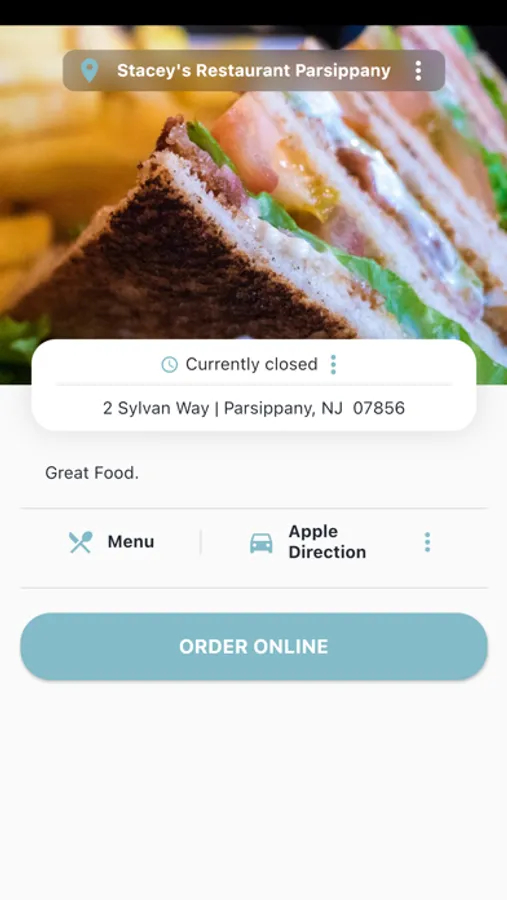 Stacey's restaurant app has many different functions. It contains an online ordering link, restaurant images, address and driving directions, store hours, menus, and many other great features.