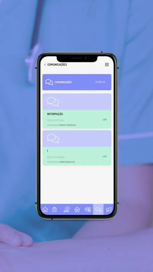 A aplicação móvel, permite ao profissional ter acesso ao plano de cuidados previamente planeado em BackOffice pela equipa de enfermagem ou direcção técnica. Desta forma, pode, no local, verificar e validar tudo o que tem para fazer no turno, podendo ainda acrescentar tarefas não planeadas e enviar/receber avisos.
