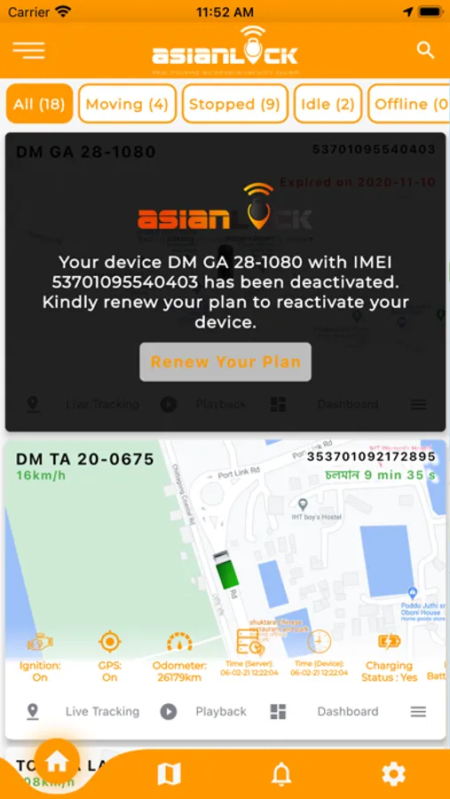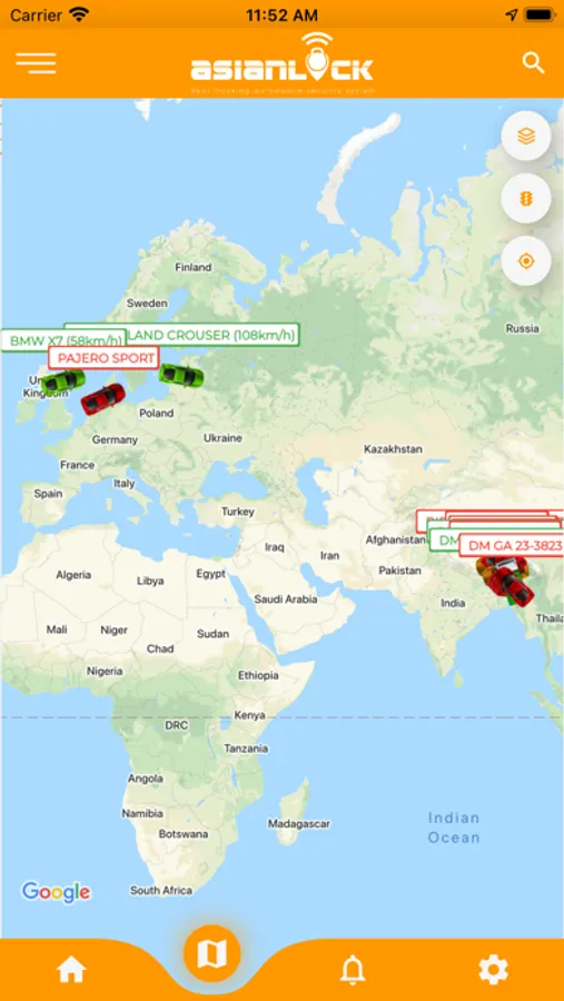 You can track all your vehicles which have a Asian Lock GPS Tracking device installed. You can view the location of your entire fleet on a map. In case of theft, you can use the built-in navigation feature to navigate to your vehicle as it is being driven away and also lock the vehicle from your mobile.