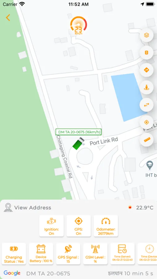 • Click on the vehicle’s icon on the map to get updated information of its location and status.