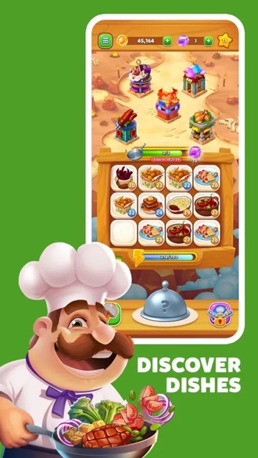 In this free game, you can merge food items by tapping the dish generator and merging identical dishes. The more you merge in this dream chef game, the better your parks will evolve. You can also unlock new special prizes through the magical Cloche to help you build your restaurant empire and become the greatest chef of all time.