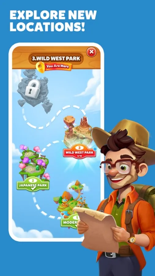 As you progress through the merge game, you'll have the opportunity to visit different locations, including gardens, mansions, hotels, islands, adventures, and counties.