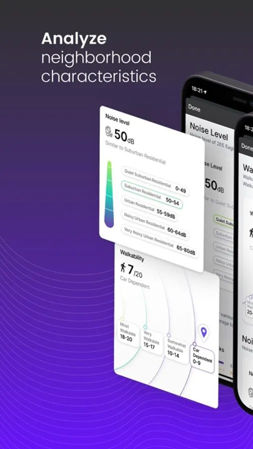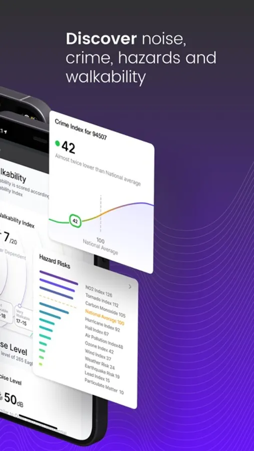 * Discover noise, crime, hazards and walkability of any region