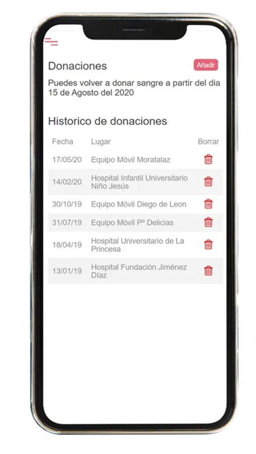 - Actualización diaria de puntos de donación de sangre